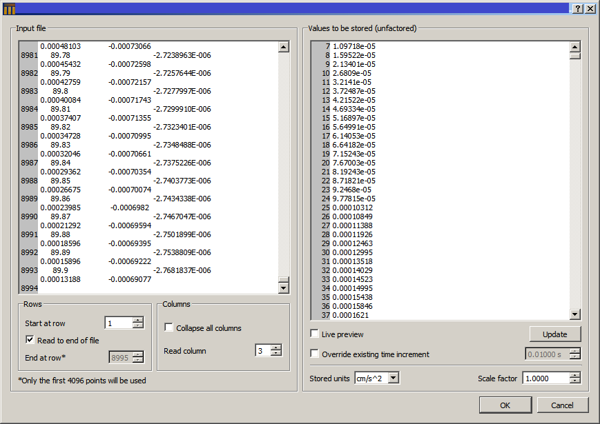 For transient response computation, ground acceleration data can be imported to the software through an Import Wizard.