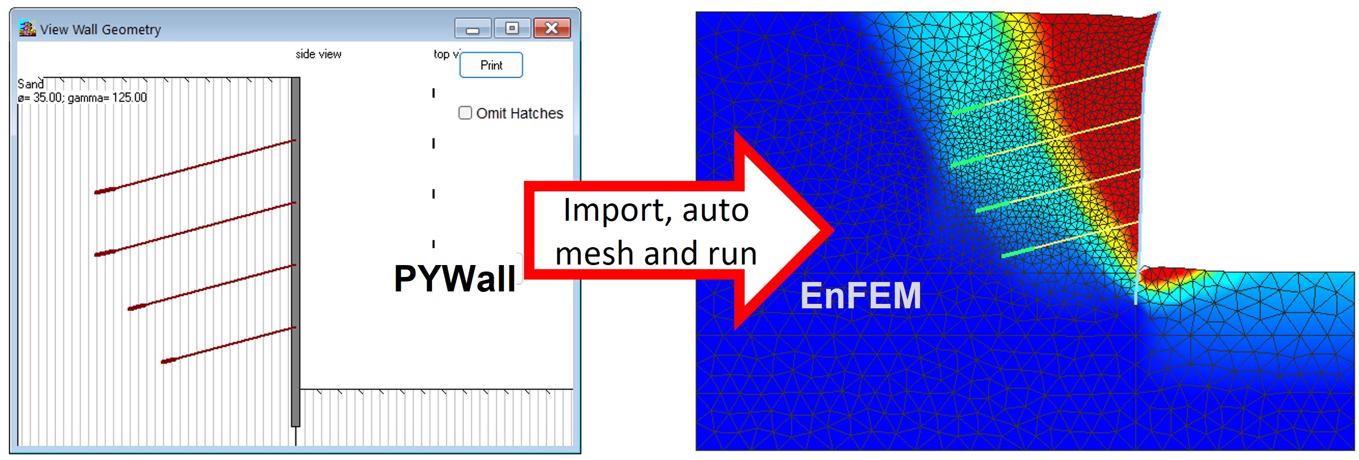 Modern methods of analyses of the behavior of retaining structures consider realistic soil conditions and relevant details of the structural system. Therefore, a rational method of analysis and design must include the nonlinear soil-resistance-displacement relationships, pile spacings, penetration depths and structural properties. PYWALL considers soil-structure interaction by using a beam-column model and can analyze the behavior of a flexible retaining wall or soldier-pile wall with or without tiebacks or bracing systems.